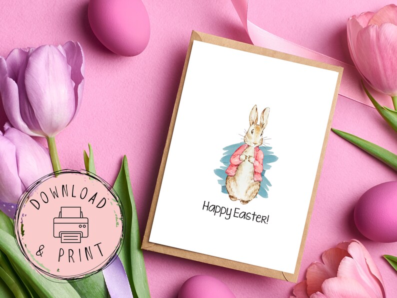 Happy Easter Printable Cards Instant Download Two Simple Easter Bunny