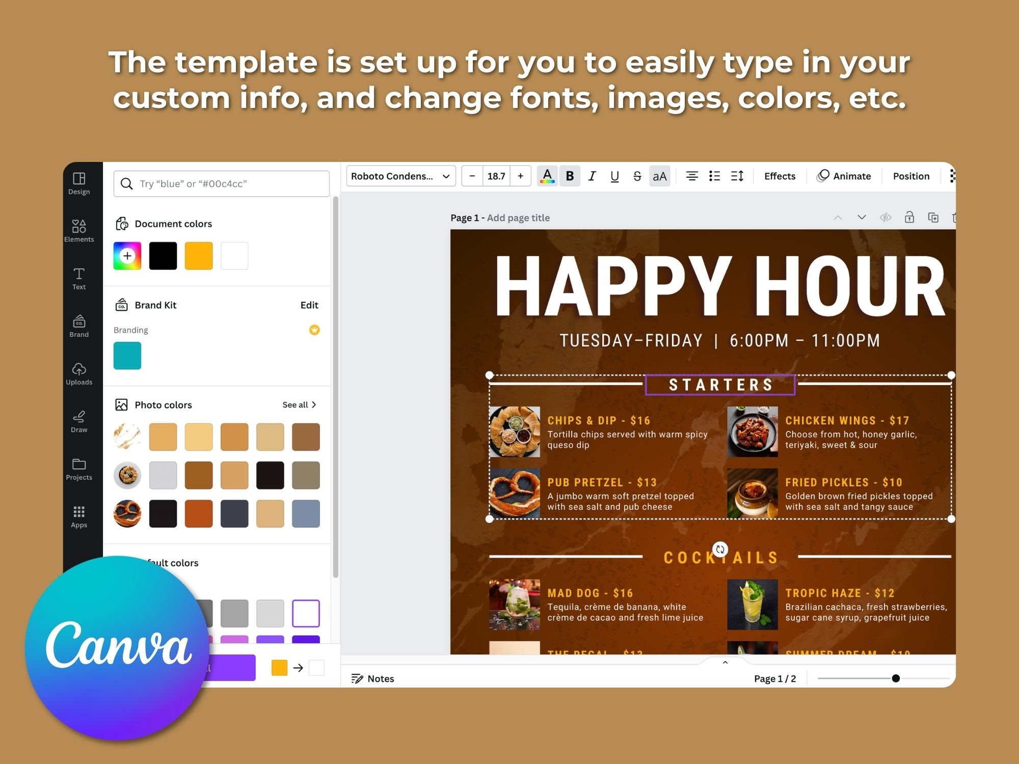 Happy Hour Poster Fully Editable Customise Your Food throughout