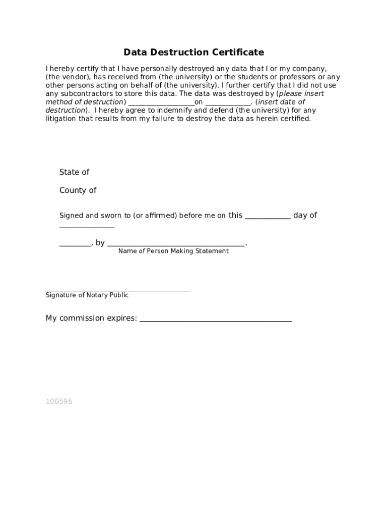 CERTIFICATE OF DATA DESTRUCTION Doc Template pdfFiller