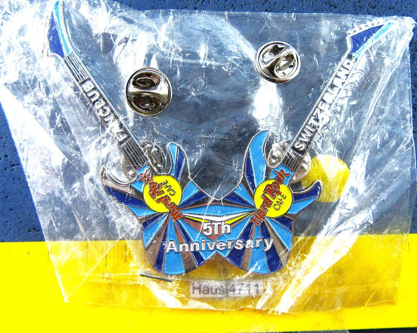 HARD ROCK CAFE SCHWEIZ FANCLUB PIN 2GITARREN 5TH ANNIVERSARY (Neu und