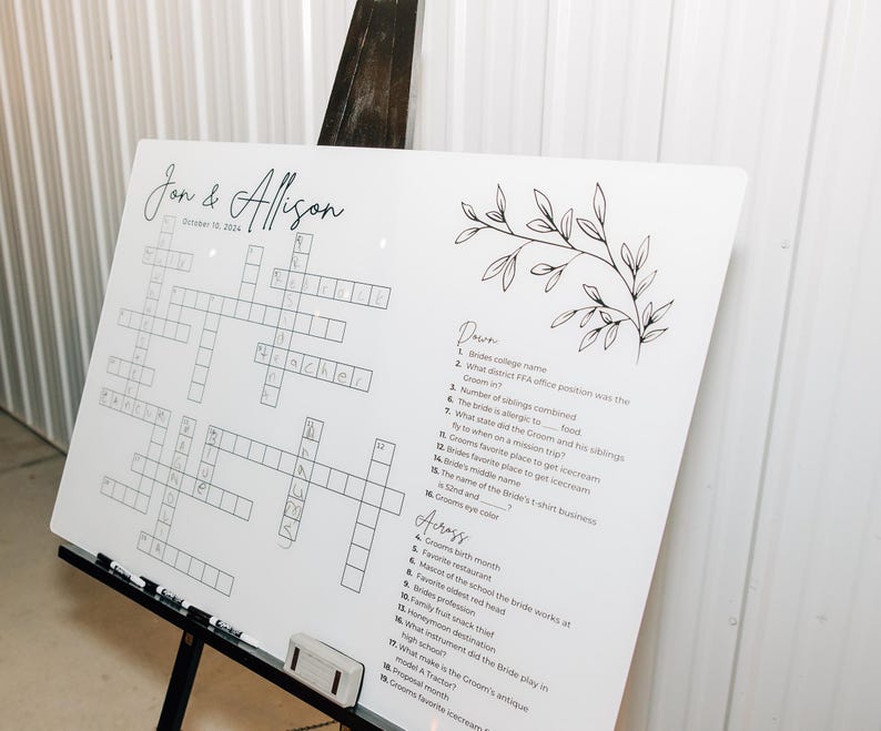 Custom Acrylic Dry Erase Wedding Crossword Puzzle 40x29 Etsy