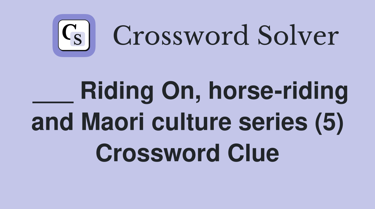 Riding On horse riding and Maori culture series (5) Crossword Clue