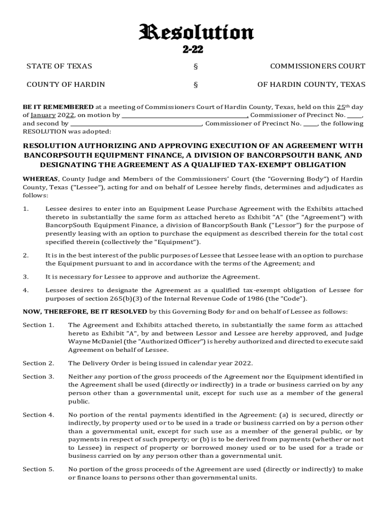 Fillable Online Order Setting Commissioners Court Hardin County