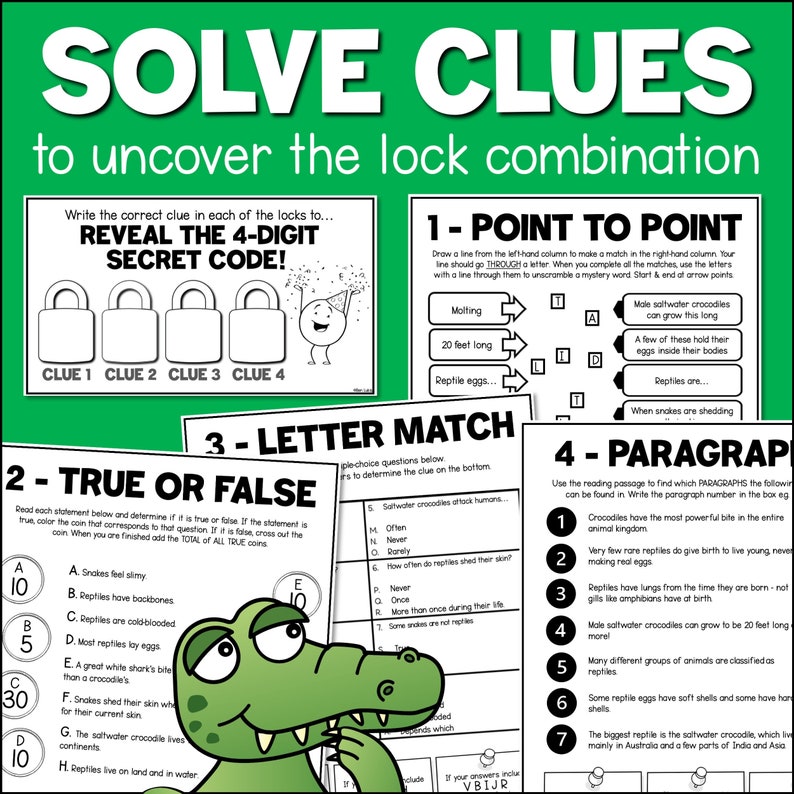 Printable Reptile Escape Room Game Kids Birthday Party Activity