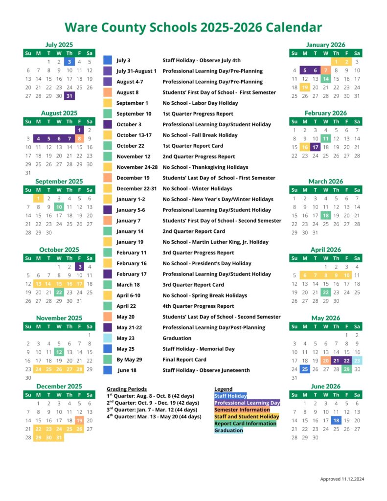 Ware County Schools Calendar 25 26 PDF EduCounty
