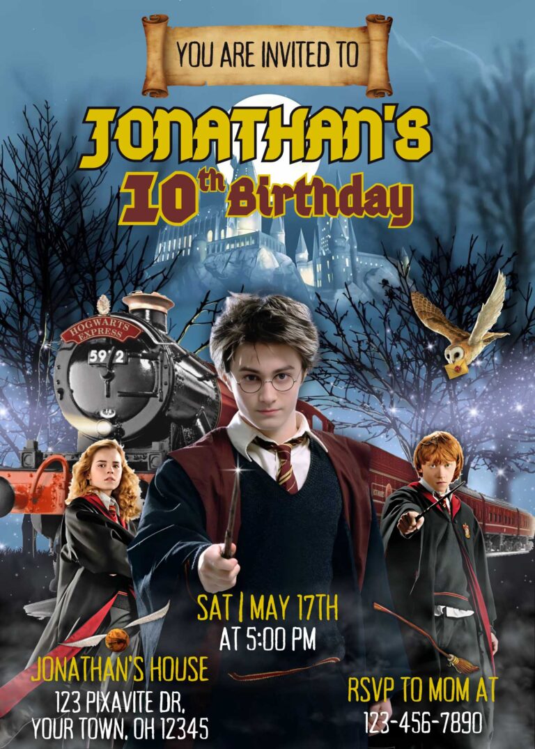 Harry Potter customizable invitation template Share or Print JW7