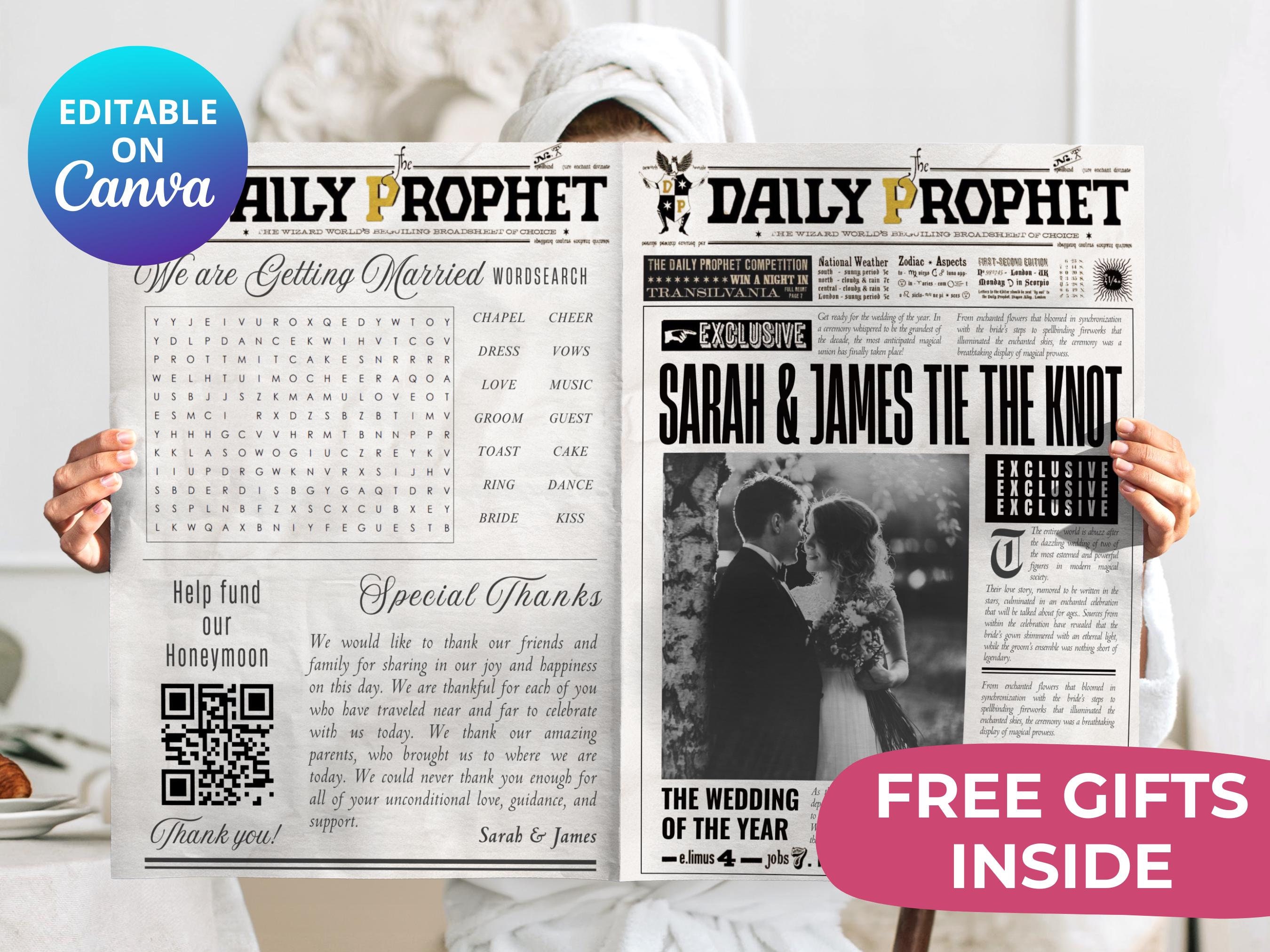 Wedding Newspaper Template Wedding Newspaper Daily Program Editable