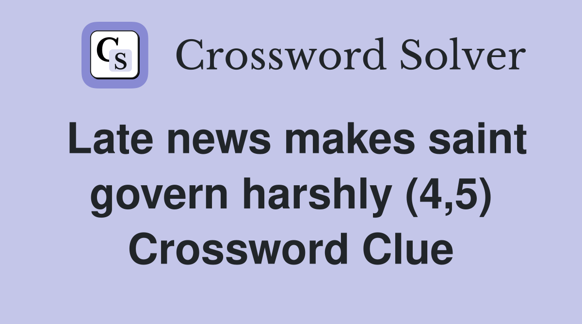 Late news makes saint govern harshly (4 5) Crossword Clue Answers
