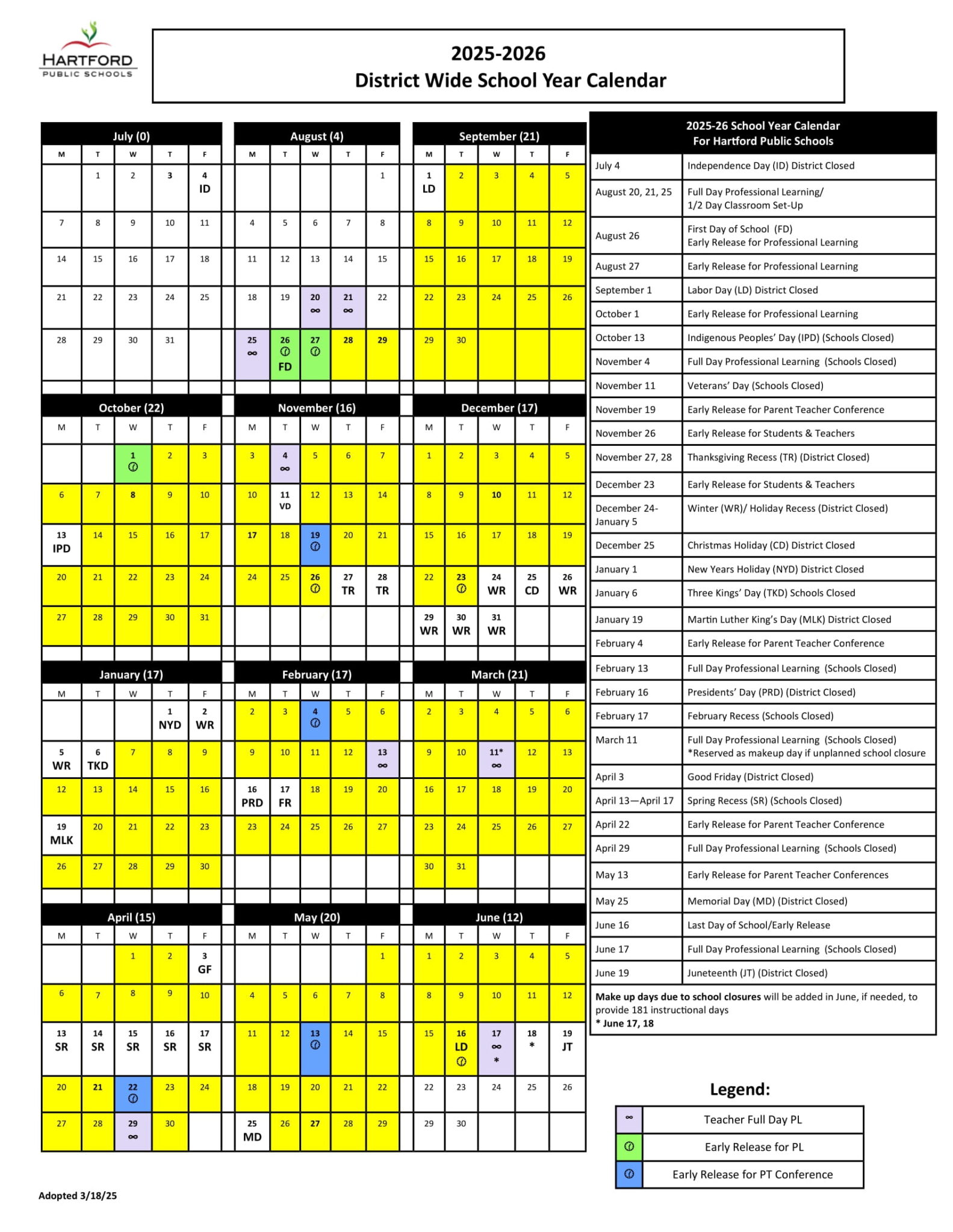Hartford Public Schools Calendar 2025 2026 in PDF School Calendar Info
