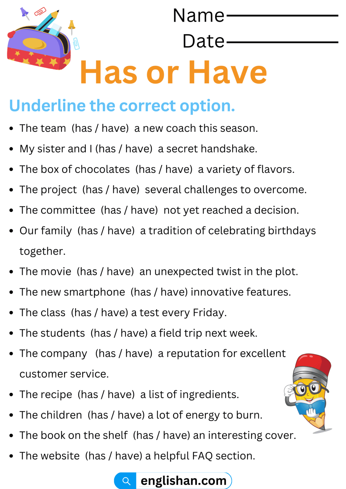 Has or Have Worksheets in English English Grammar Worksheets