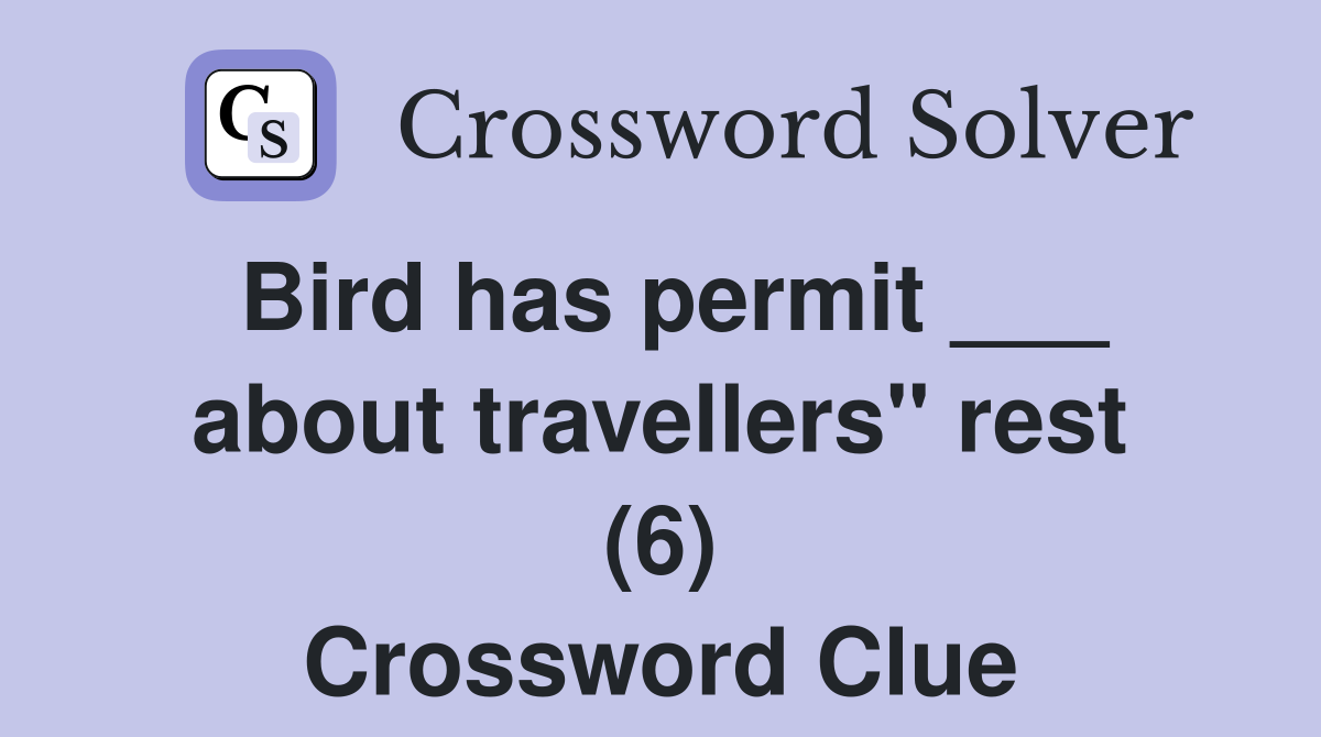 Bird has permit about travellers quot rest (6) Crossword Clue Answers