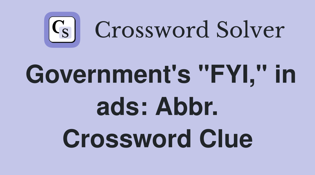 Government #39 s quot FYI quot in ads: Abbr Crossword Clue Answers Crossword