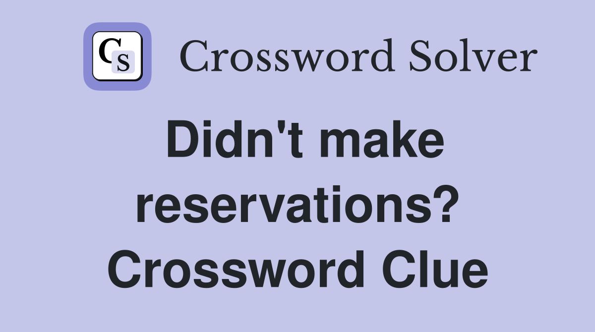 Didn t make reservations? Crossword Clue Answers Crossword Solver