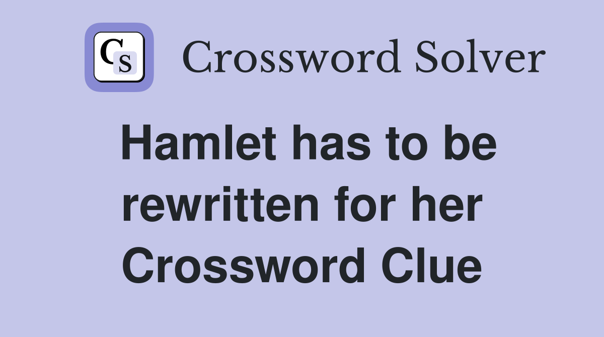 Hamlet has to be rewritten for her Crossword Clue Answers Crossword