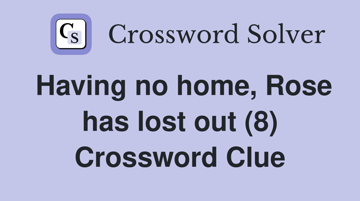 Having no home Rose has lost out (8) Crossword Clue Answers