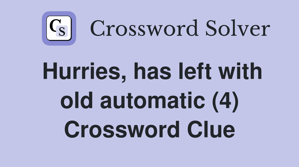 Hurries has left with old automatic (4) Crossword Clue Answers