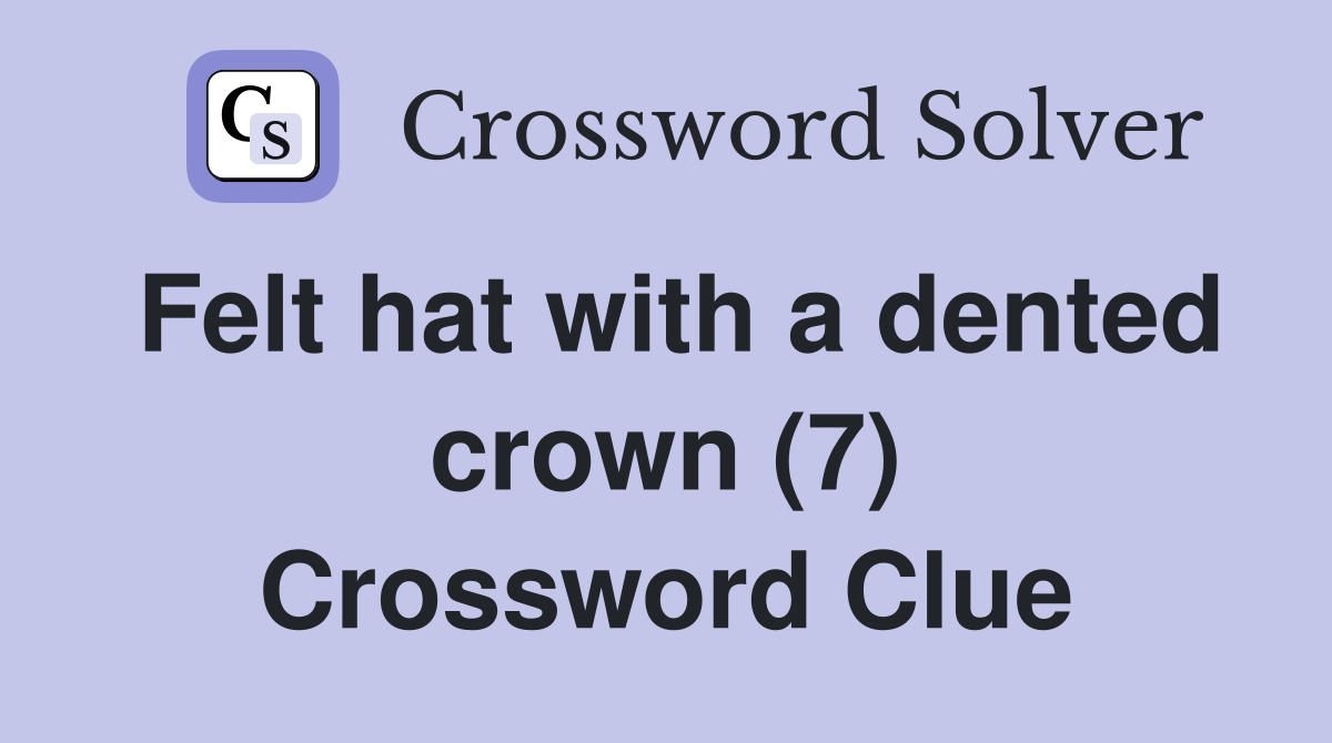 Felt hat with a dented crown (7) Crossword Clue Answers Crossword