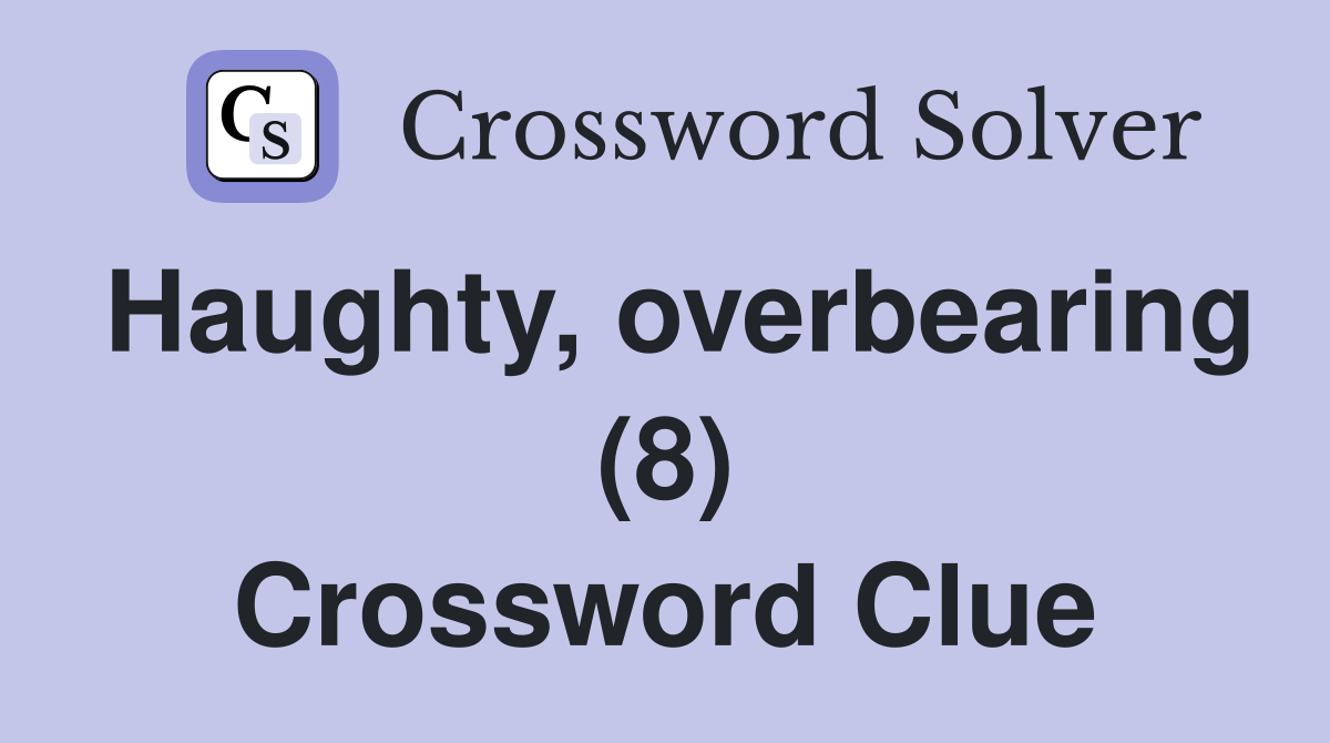 Haughty overbearing (8) Crossword Clue Answers Crossword Solver
