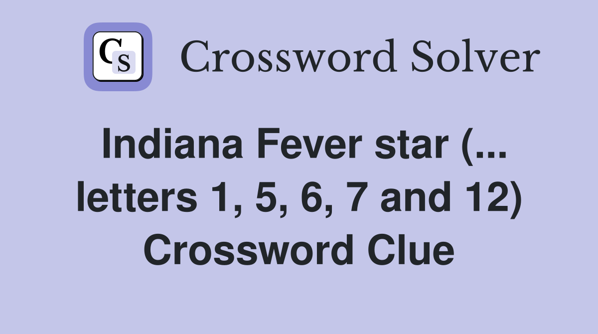 Indiana Fever star ( letters 1 5 6 7 and 12) Crossword Clue