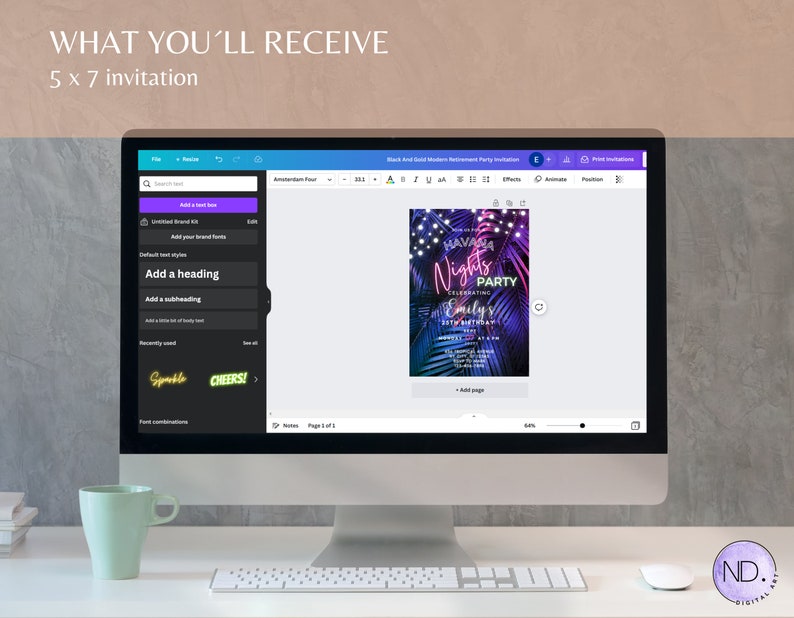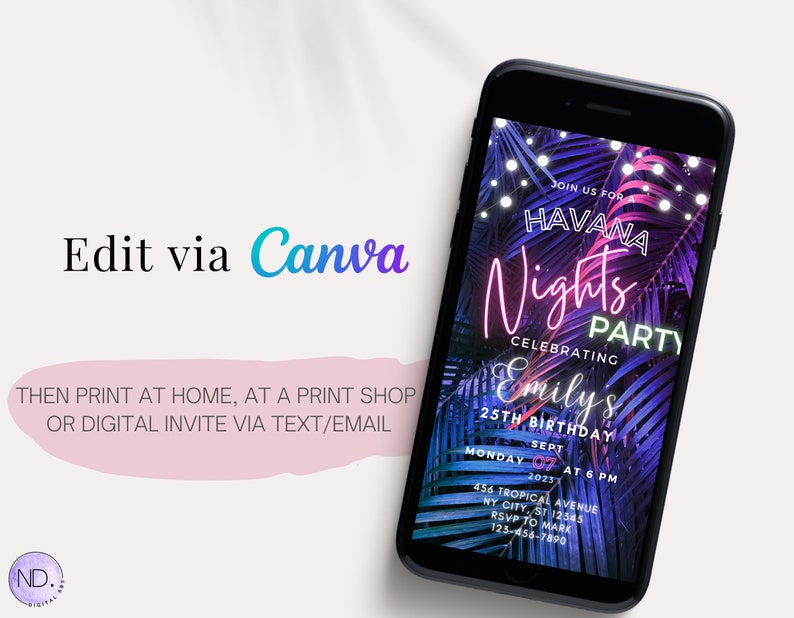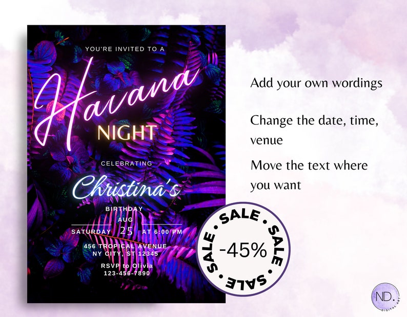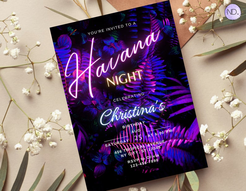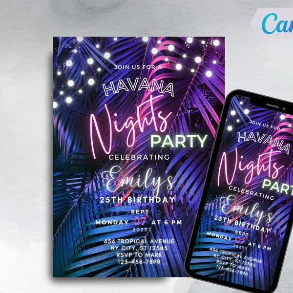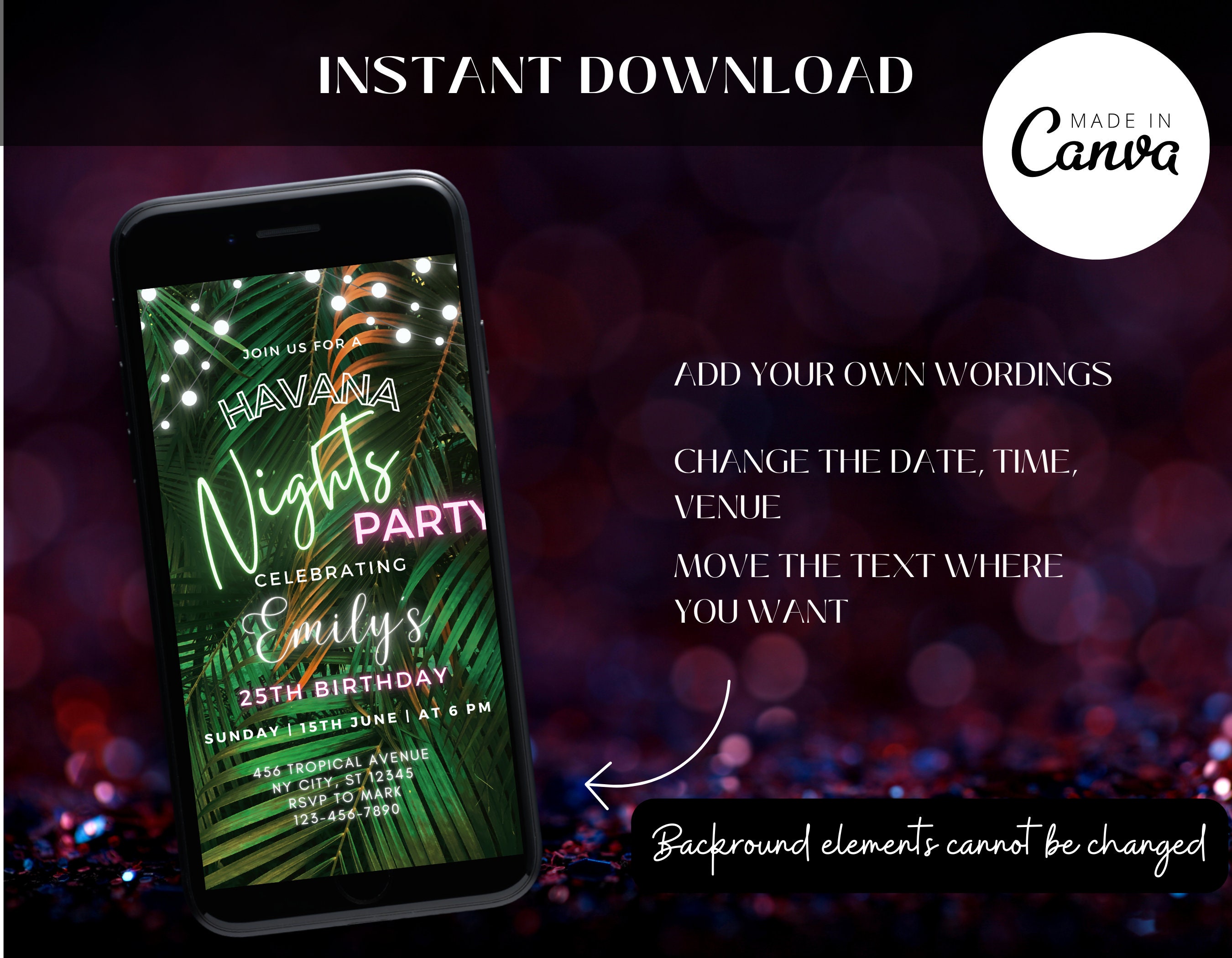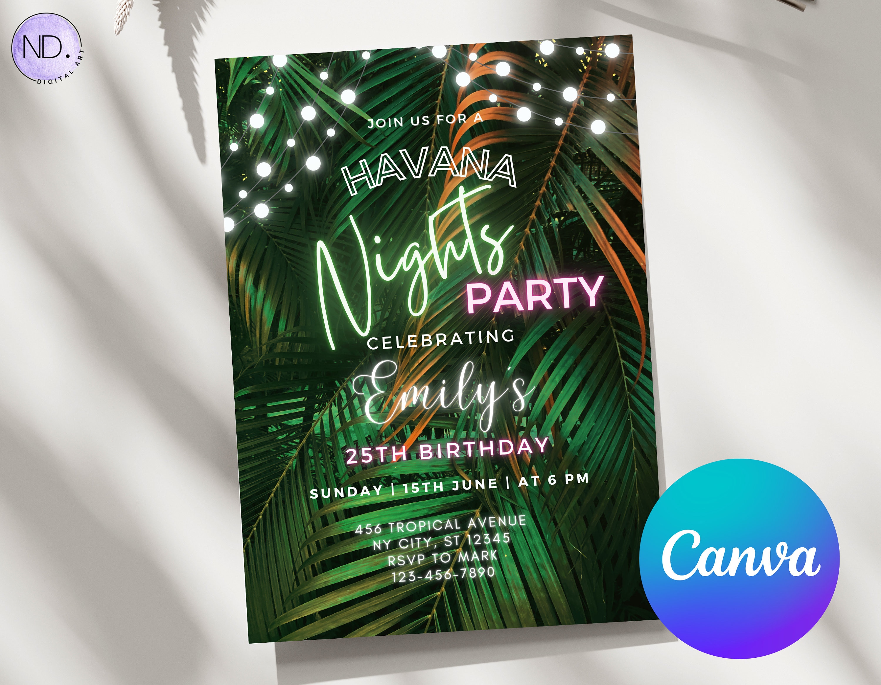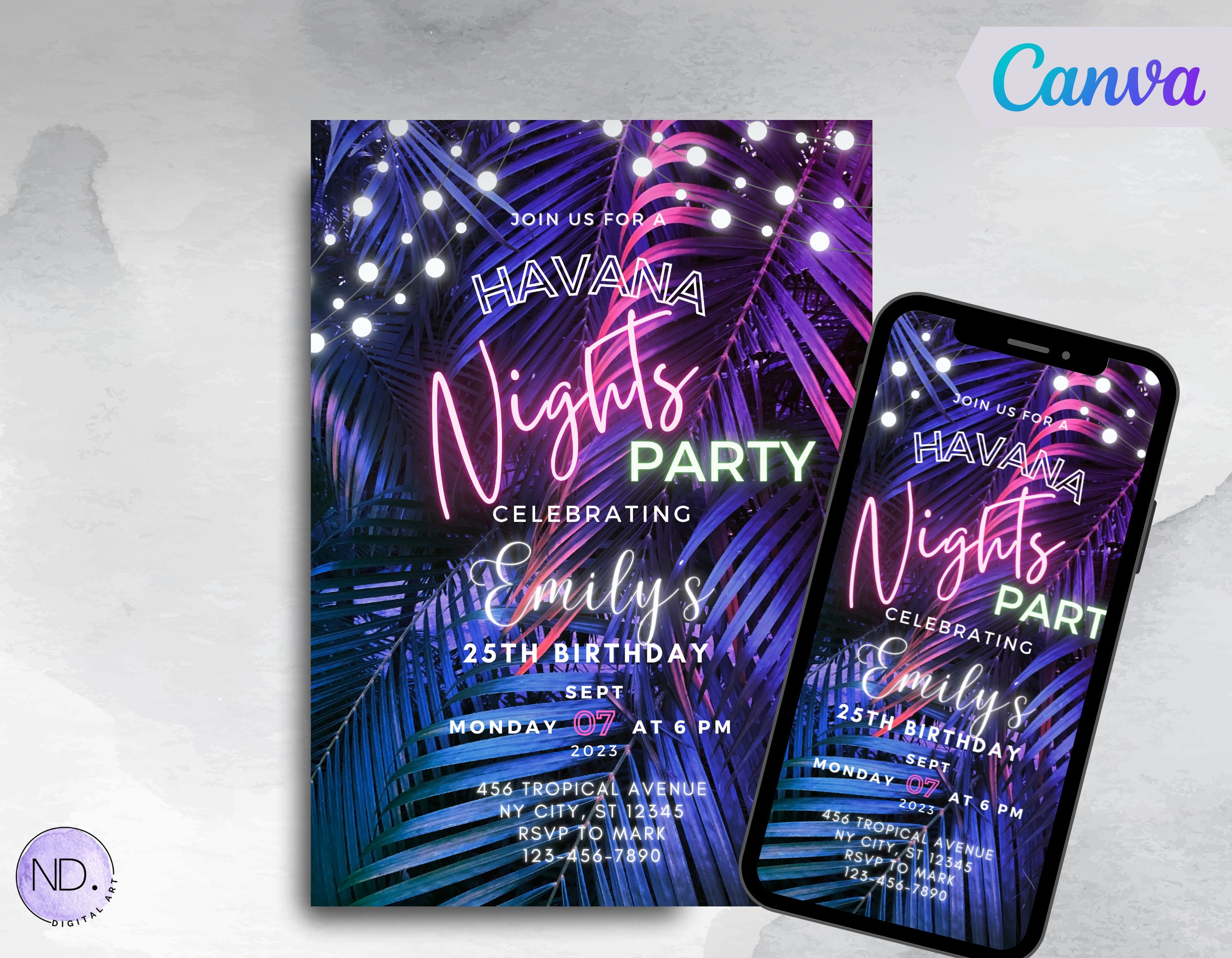 Editable Havana Nights Invitation Neon Tropical Party Invitation Havana