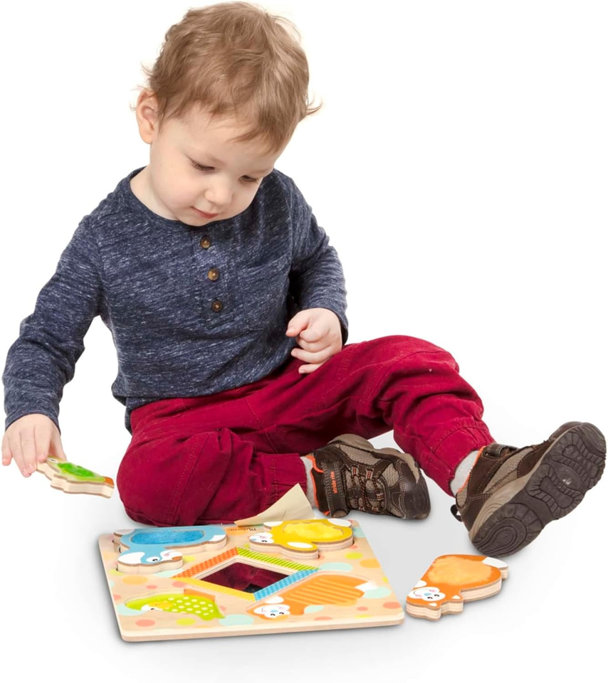 First Play Peek A Boo Pets Wooden Touch and Feel Puzzle with Mirror
