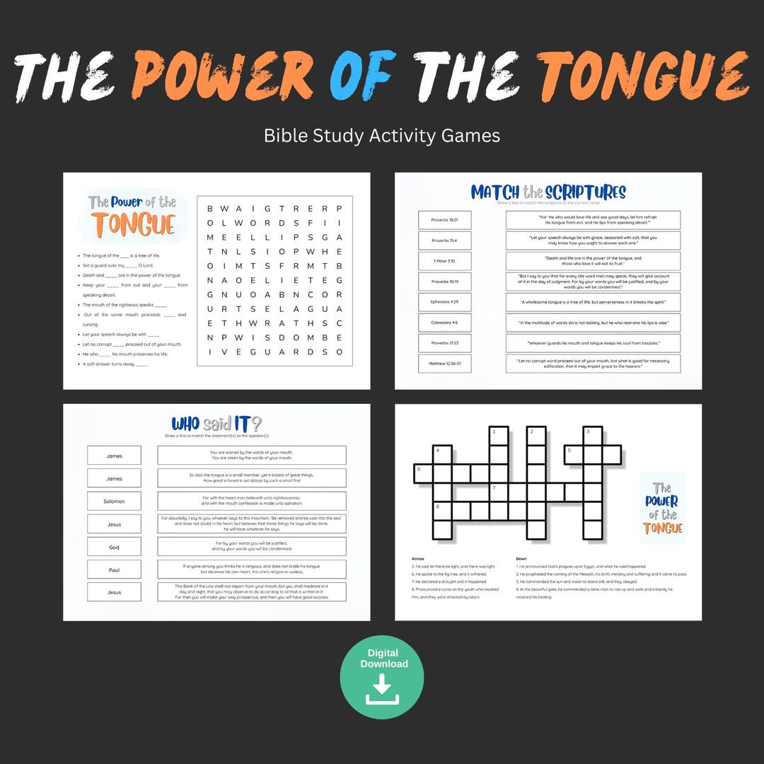 The Power of the Tongue Christian Teen Kid Crossword Puzzle Word Search