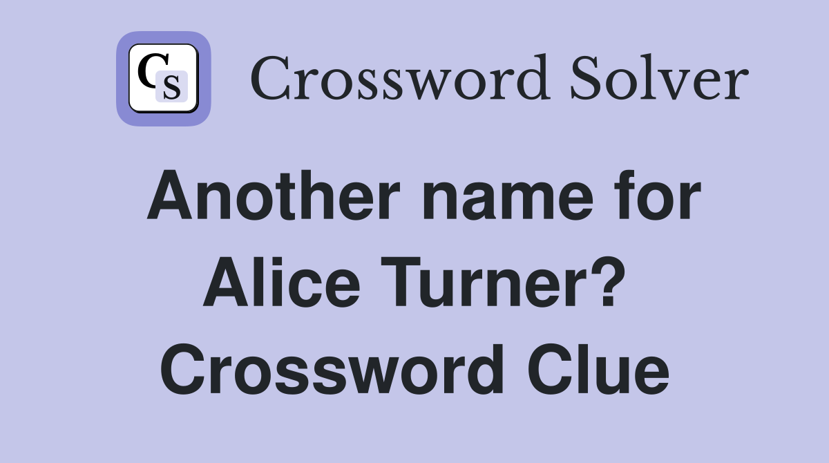 Another name for Alice Turner? Crossword Clue Answers Crossword Solver