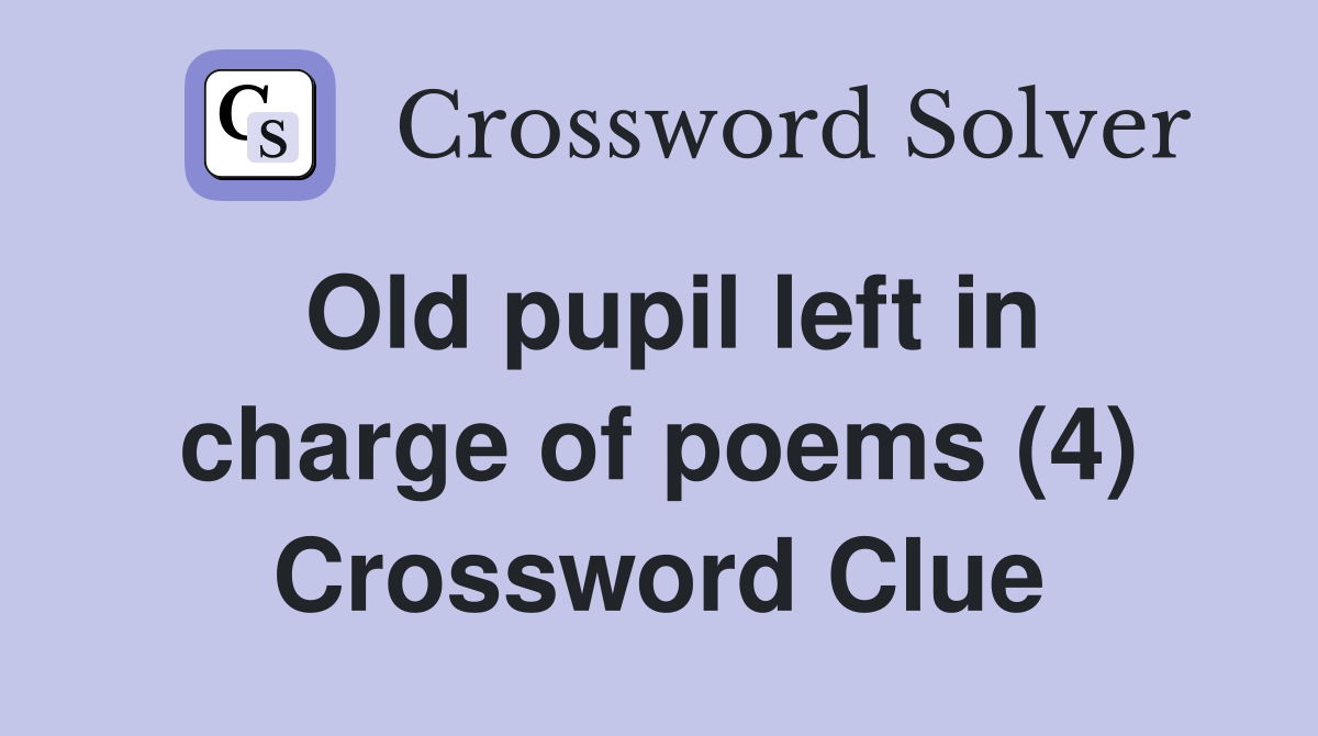 Old pupil left in charge of poems (4) Crossword Clue Answers