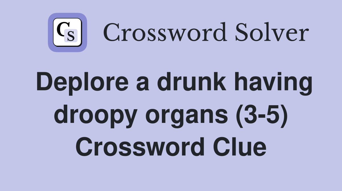 Deplore a drunk having droopy organs (3 5) Crossword Clue Answers