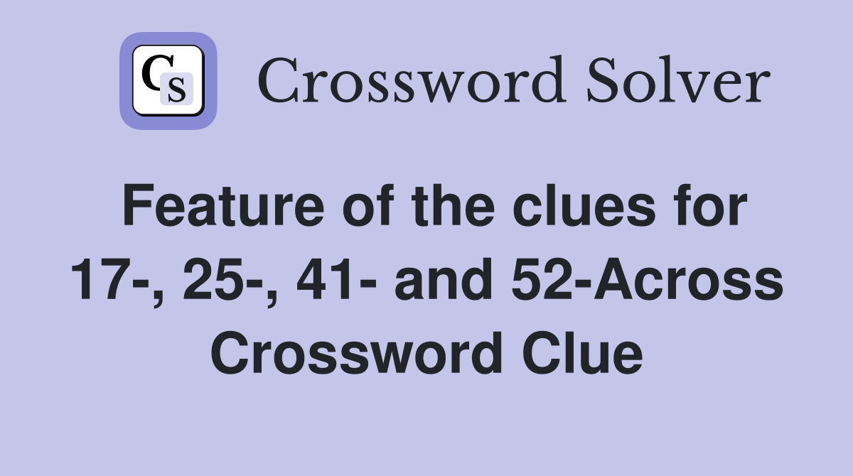 Feature of the clues for 17 25 41 and 52 Across Crossword Clue