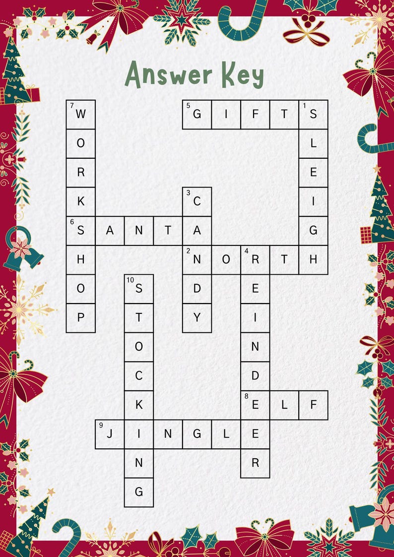 Elf Crossword Puzzle Printable Christmas Activity for Kids Holiday