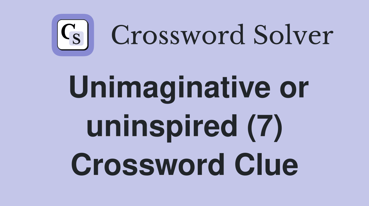 Unimaginative or uninspired (7) Crossword Clue Answers Crossword Solver
