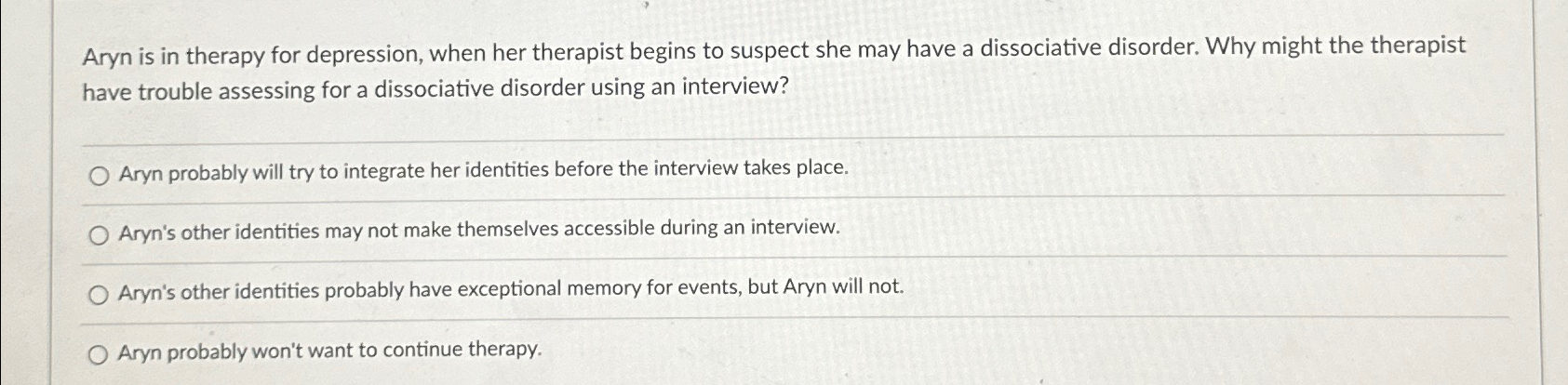 Solved Aryn is in therapy for depression when her therapist Chegg com