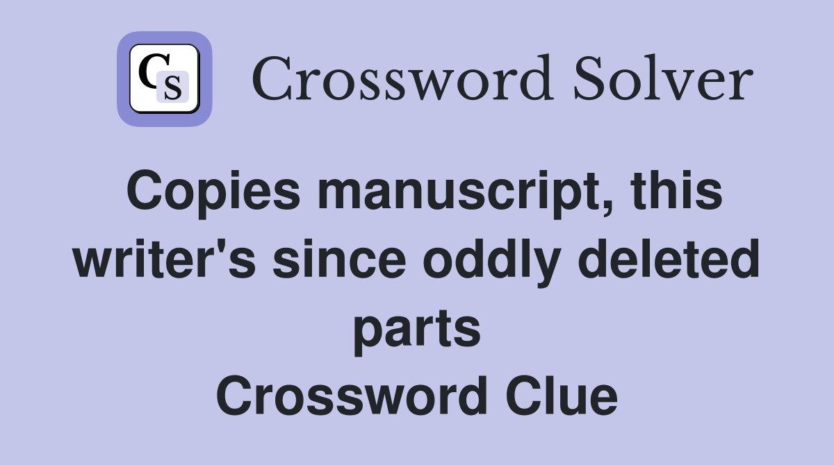 Copies manuscript this writer #39 s since oddly deleted parts Crossword