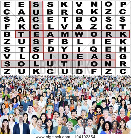 Success crossword vector illustration Cartoon business people team
