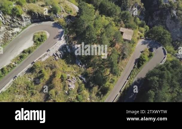 Top view of mountain turns of road Stock Dangerous and sharp turns on
