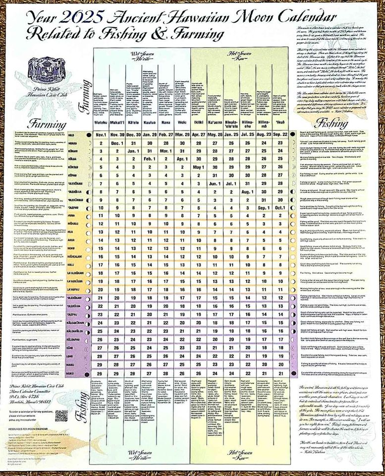 2025 Farming Fishing Hawaiian Moon Calendar The Pono Foundation