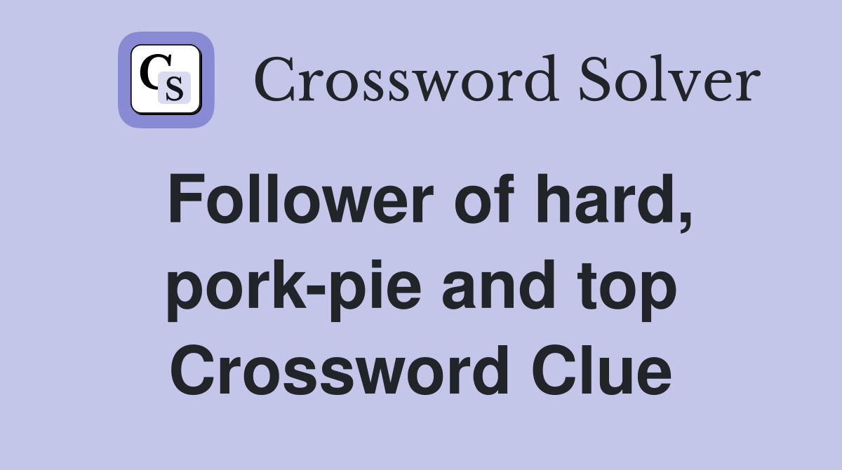 Follower of hard pork pie and top Crossword Clue Answers Crossword