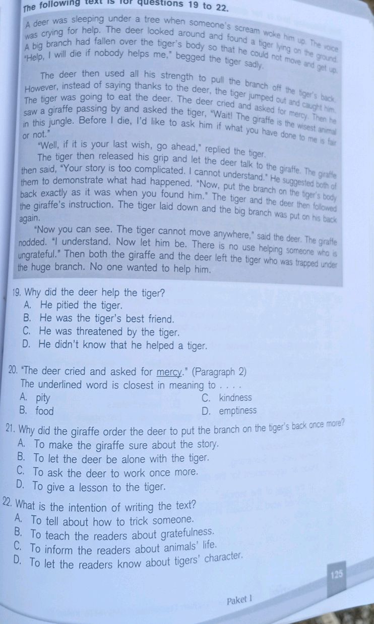19 Why did the deer help the tiger? A He StudyX