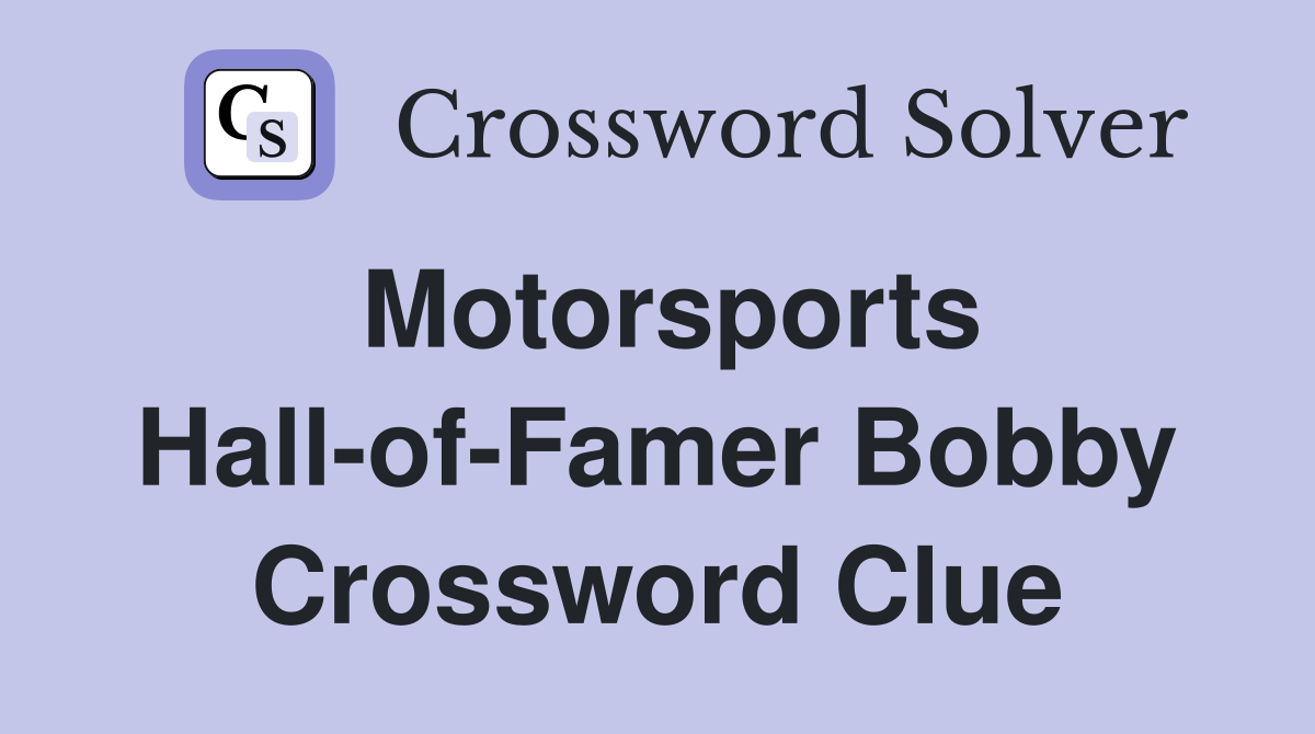Motorsports Hall of Famer Bobby Crossword Clue Answers Crossword Solver