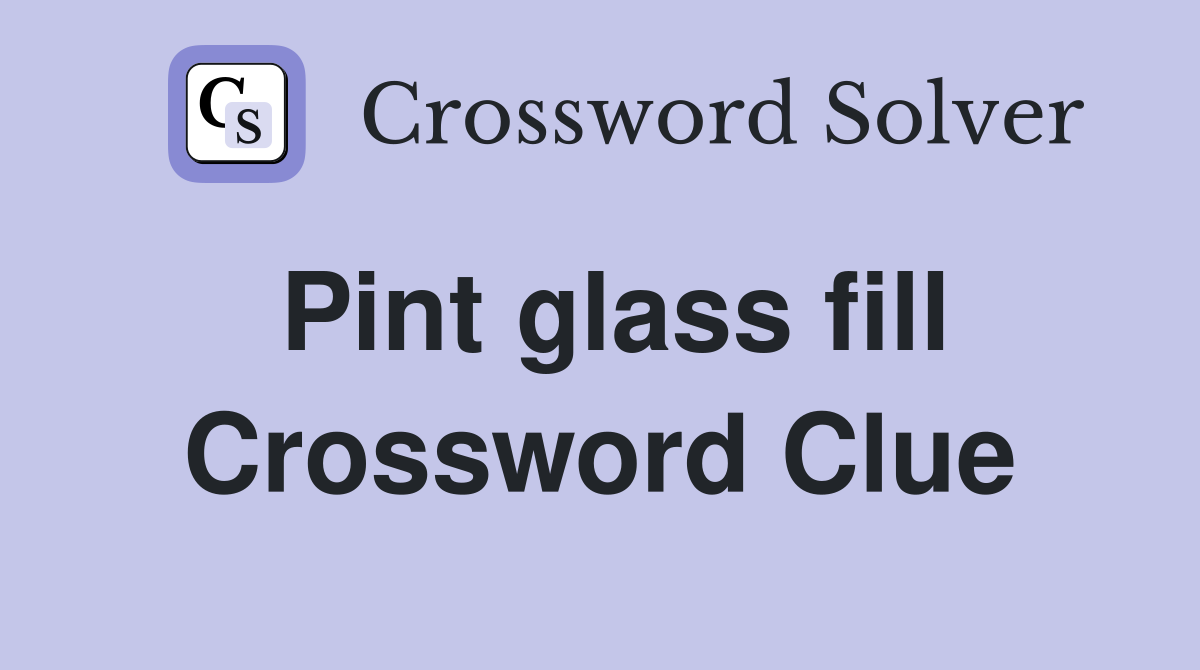 Pint glass fill Crossword Clue Answers Crossword Solver