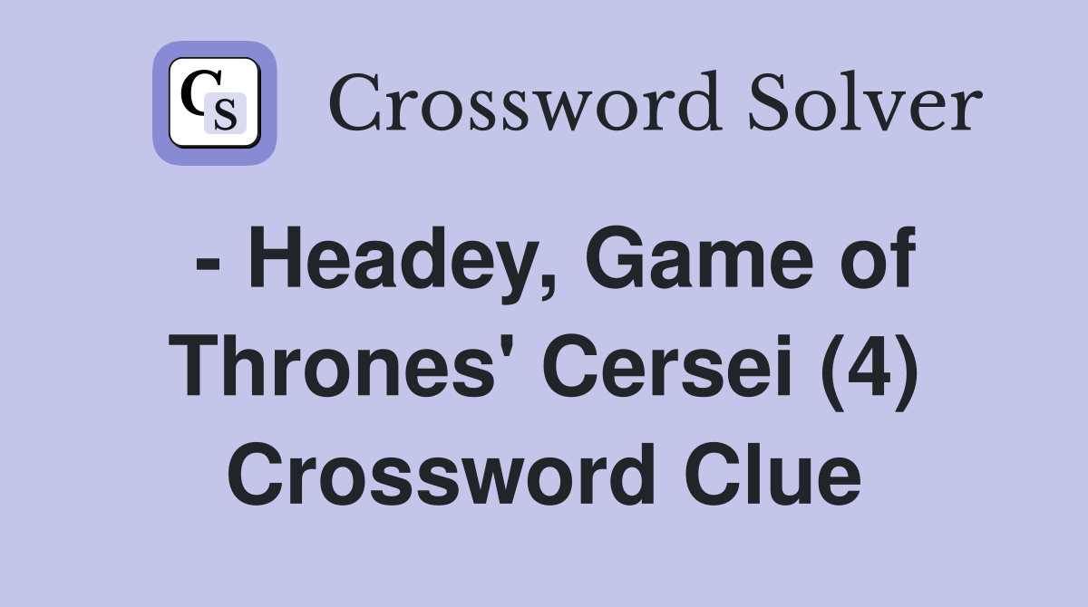 Headey Game of Thrones #39 Cersei (4) Crossword Clue Answers