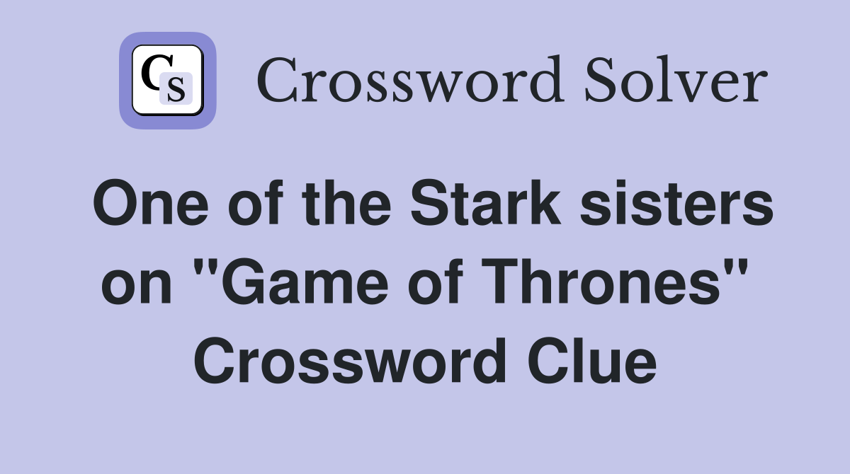 One of the Stark sisters on quot Game of Thrones quot Crossword Clue Answers