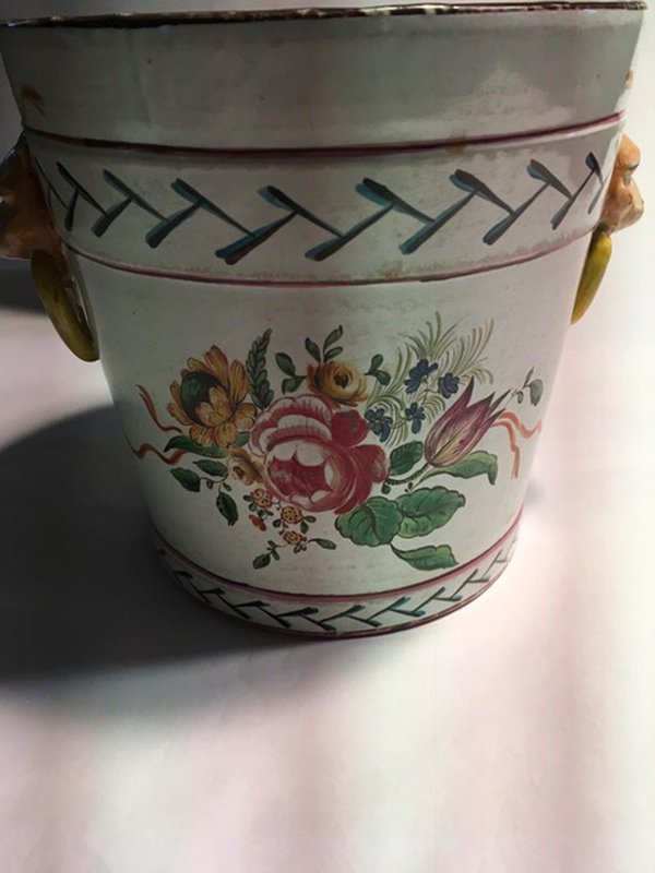 Late 19th Century Pottery Cache Pots with Flowers and Lions Heads