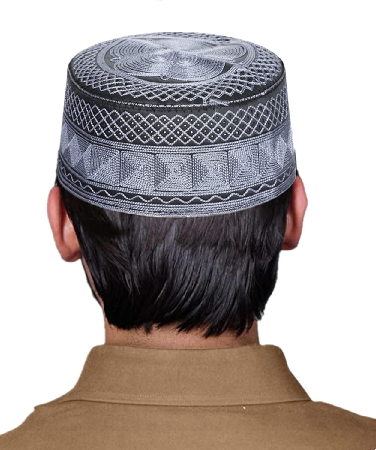JISBEIFHA Men Muslim Prayer Kufi Hat Breathable Embroidery Kofia Topi