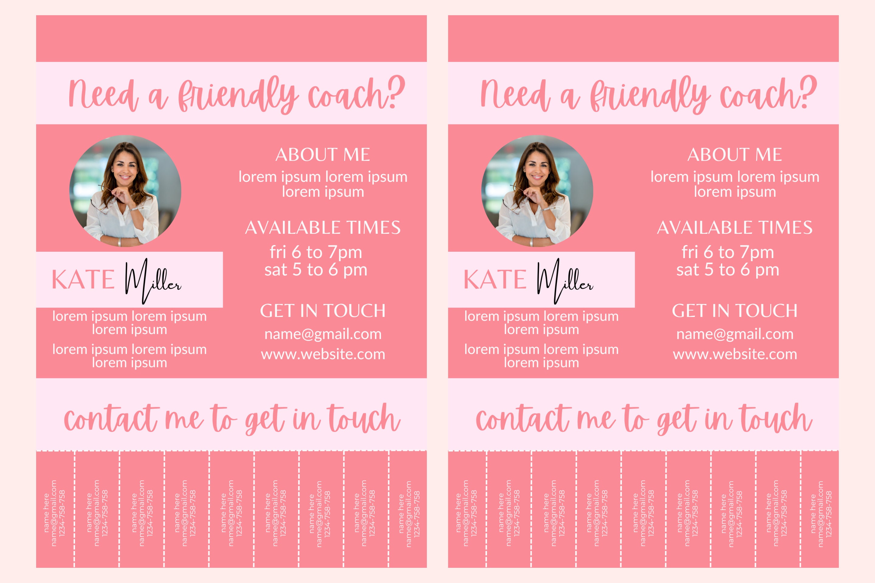 Pink Health Flyer Tear off FLYER A4 Coach Flyer Template class Flyer