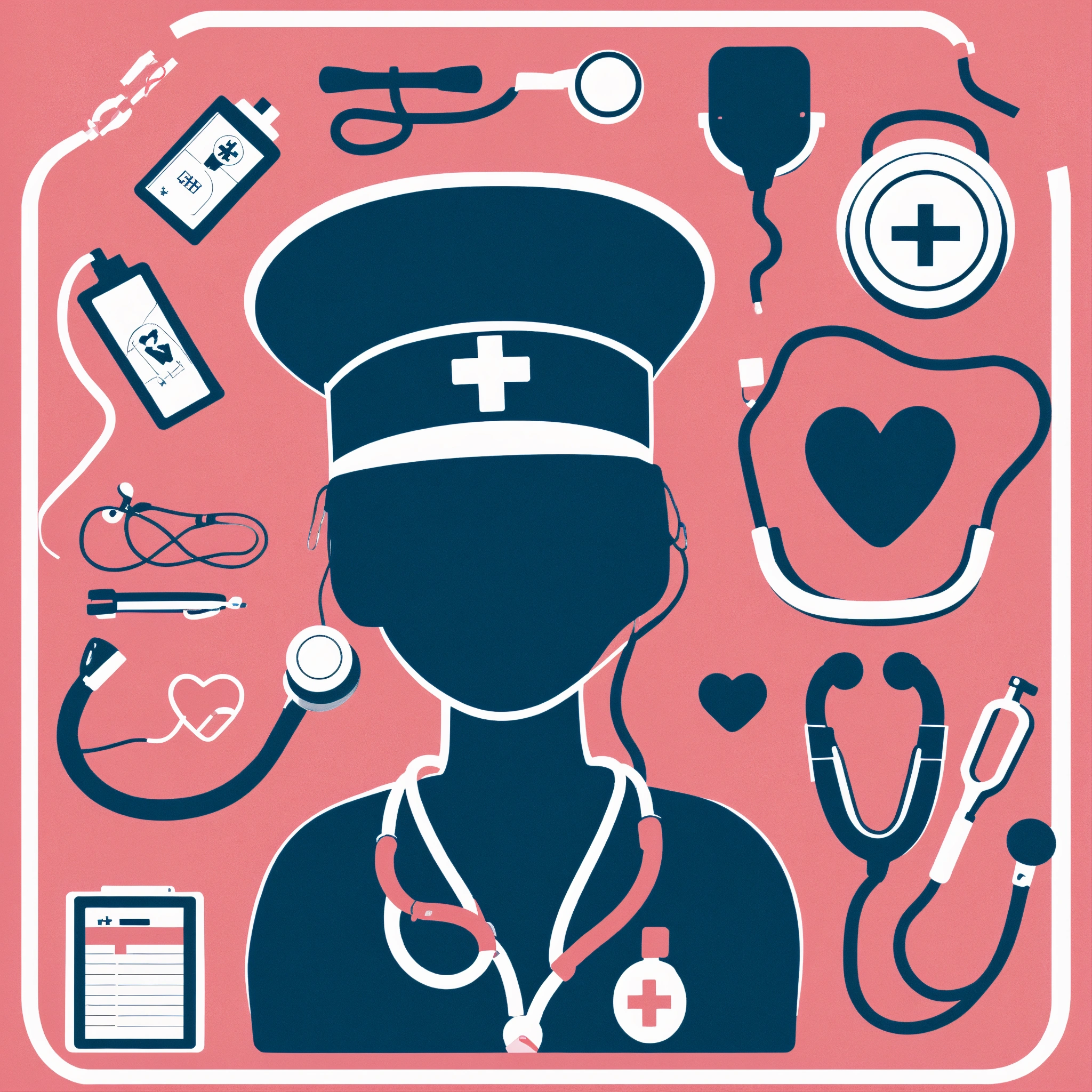 An illustration of various medical symbols including a heart with a
