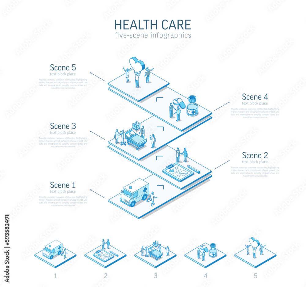 3d Line Isometric Healthcare Infographic Template Medical Care
