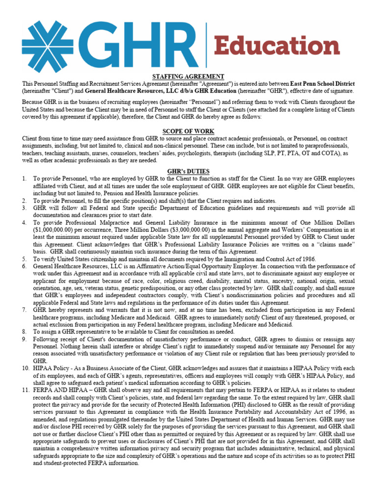 GHR Education Staffing Agreement Exhibit 6 24 19 PDF Indemnity