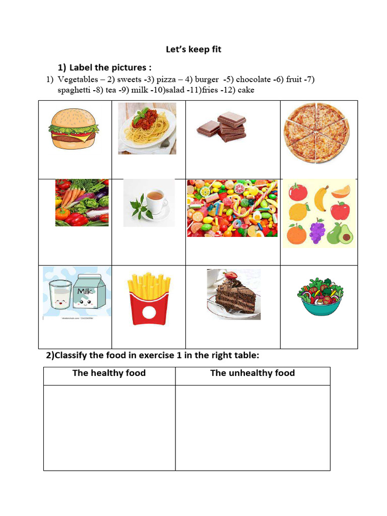 Healthy and unhealthy food worksheet for 1º Worksheets Library
